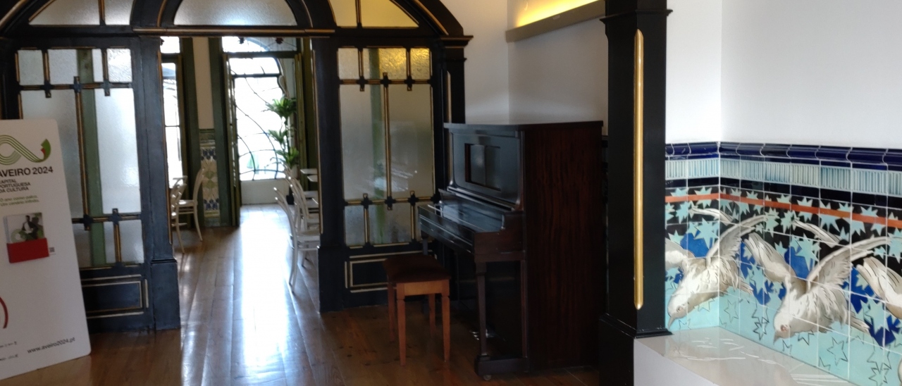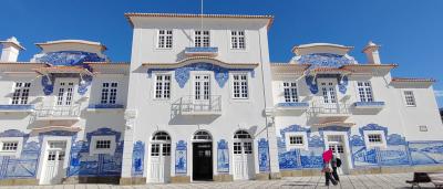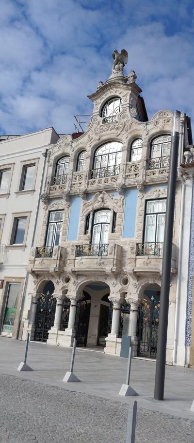 アヴェイロ の「中央運河」沿いの通りに建っています。建物の一番上に鷲の装飾があり、水色の素敵なアール・ヌーヴォー建築の博物館は一際目立ちます。1階は、カフェ&バーになっており無料で入ることができます。中に、斬新なデザインのアズレージョを見ることが出来ました。