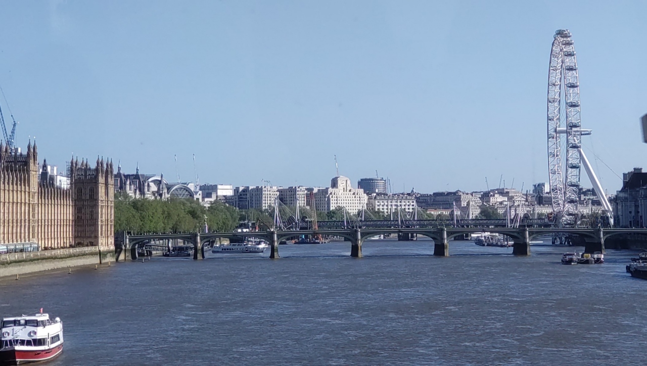 ロンドン「テムズ川」に架かる橋です。橋の北側には、「ウェストミンスター宮殿」、南側には「ロンドン・アイ」などがあり、ロンドン観光の中心にあると言えます。橋の長さは250m、幅26mで7つのアーチがあります。ゴシック風細工がなされています。色は主に緑色で、庶民院の座席と同じ色とのことです。