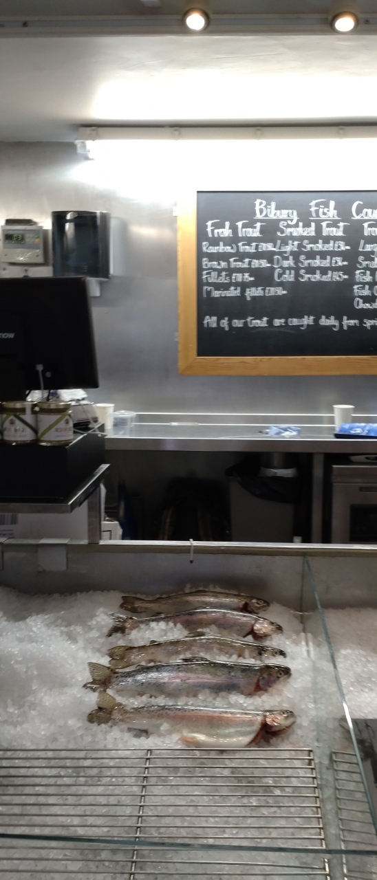 イギリスで最も美しい村「バイブリー」にあるマスの養殖場です。入口付近にカフェと売店があります。売店では、数匹の生のマスが並べて売られていました。売店は無料ですが、入場料がかかります。裏手などから、どこともなく覗けそうな雰囲気でした。