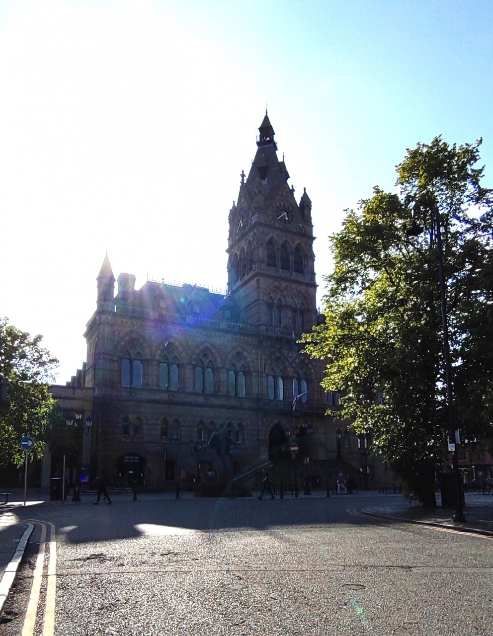 市庁舎は旧市街の中心、「チェスター大聖堂」の近くにあります。旧市街散策中に立ち寄りました。1698年に建てられ、焼失後の1864~1869年にゴシック・リヴァイヴァル様式で建てられました。その後、火事の損傷を1898年に修復しています。砂岩で作られていて、尖塔は49メートルのと言う、堂々とした姿をしています。
