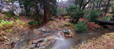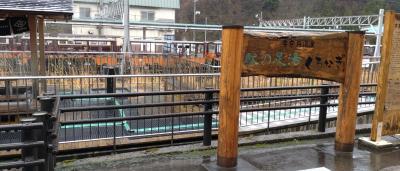 雨模様の寒空の広がる宇奈月温泉街を散策していると、「湯めどころ宇奈月総湯」の足湯から暖かそうな熱気を感じたので利用させていただきました。足湯の周りには、白いビニールシートがめぐらされていて、雨の心配もなく温かさが守らていました。後の散策中は、足のポカポカ状態は維持されていました。