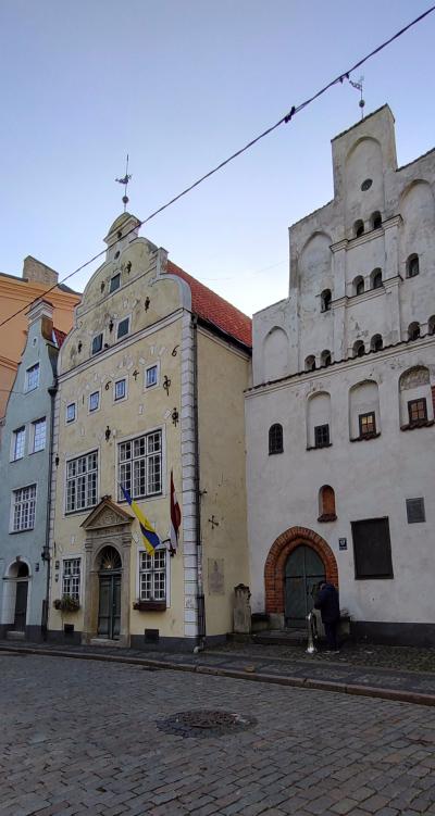 ラトビアの世界遺産「リガ歴史地区」にあります。向かって右側の建物は長男で、15世紀に建築され、リガ最古の石像住宅とのことです。玄関に石のベンチがあります。中央は次男で、17世紀に建築され、正面はオランダのマニエリスム様式となっています。左側の三男は、17世紀末の建設で、他の2軒に比べ幅が狭く、バロック様式の破風が特徴的です。税金対策が垣間見られます。