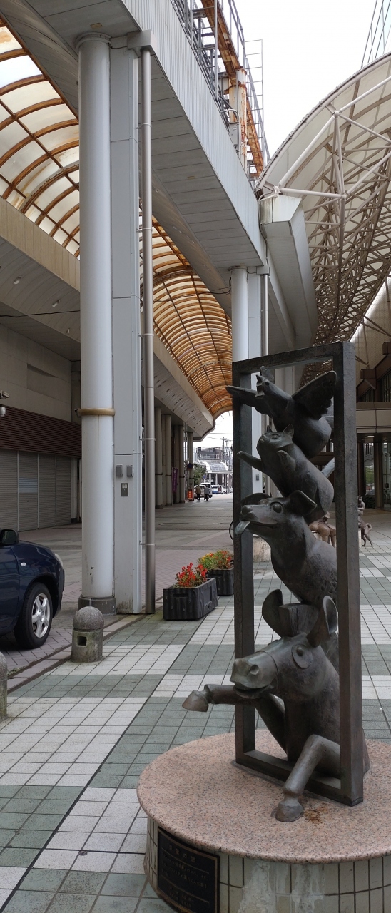 高岡の「御旅屋セリオ」を含む「御旅屋通り」を散策していると、たくさんの銅像がありました。かつては賑わっていたであろう商店街ですが 今は人通りも少ない感じです。その賑わいを思い起こさせるように、「御旅屋セリオ」横の「御旅屋メルヘン広場」付近にはたくさんの楽しそうな銅像がありました。メルヘンにふさわしいです。