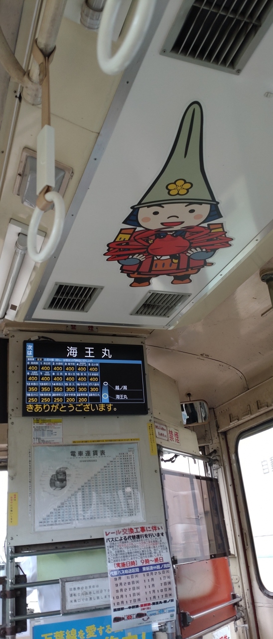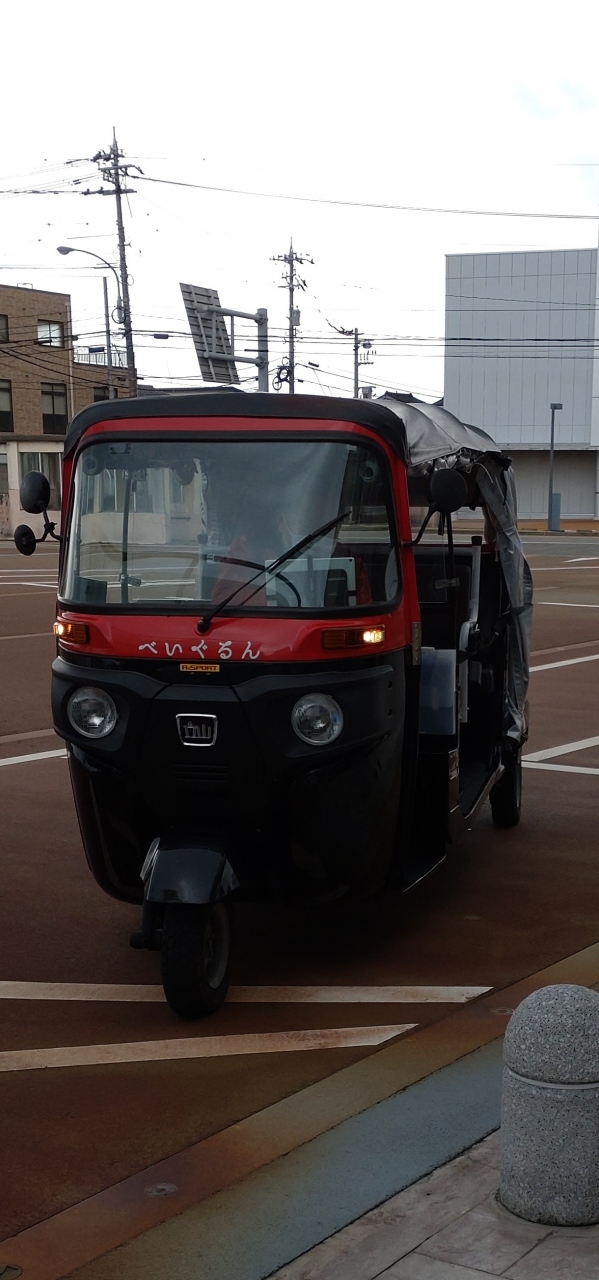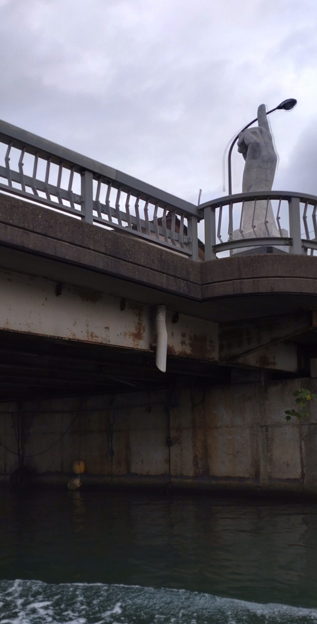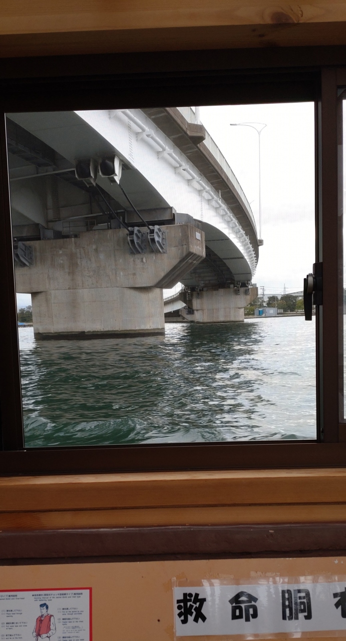 ”いろんな乗り物体験と新湊散策”のツアーで、ガイドさんの案内のもと 乗船しました。乗船を待っている間、船着き場の船は結構波に揺られていました。船酔いが心配でしたが、「新湊大橋」の見える 見晴らしのいい2階席で景色を楽しんでいたら、風も気持ちよく5分間の乗船時間は無事に済みました。お天気が良くなかったのは少し残念でした。