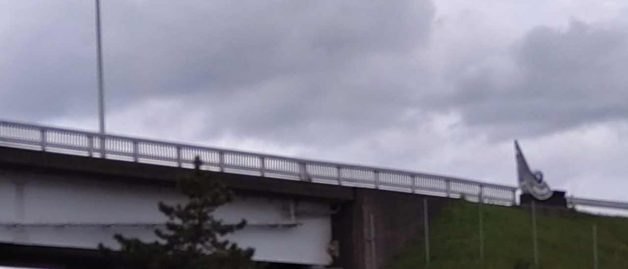 ”いろんな乗り物体験と新湊散策”のツアーで、ガイドさんとともに日本海側最大の斜張橋の「新湊大橋」の車道の下にある歩行者専用通路「あいの風プロムナード」の東の「掘岡発着所」側から西の「越ノ潟発着所」側に歩きました。自転車の場合は、押して渡らなければならないそうで、もし自転車にのっていたものなら、監視カメラにて発見され非常に大きな声でスピーカーから警告があるとのこと。安全がしっかり守られているとのことです。散歩にやさしいです。