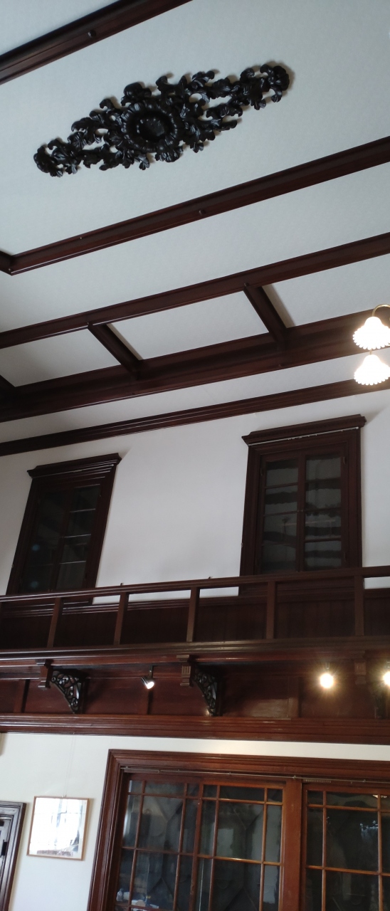 明治時代、旧北陸街道に面して「小杉貯金銀行」の本社社屋として建立されたそうです。国登録有形文化財に指定されています。外観は、黒漆喰 窓には金属製の防火扉と一見質素ですが、中は飴色のワニス塗りの木部と白漆喰塗りが美しく気品を感じます。銀行ならではカウンターは残念ながら撤去されたそうです。