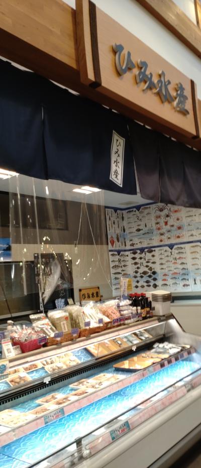 氷見の海岸沿いで立山連峰がのぞめる 広々とした気持ちのいい場所にあります。いろいろなお土産がそろっていますが、鮮魚を扱っているのが、魚の街らしく思えました。生魚が皿に入って売られていたり、お寿司をはじめ、お惣菜のお魚もあります。干物などの加工品の種類も多く、ショッピングを十分に楽しめました。