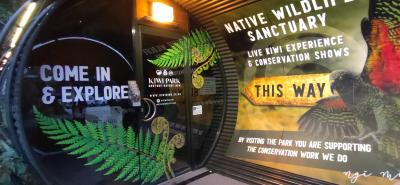 クイーンズタウンの「スカイラインゴンドラ」の乗り場に行く途中に「キーウイパーク」の入口があります。入口は、大きなドラム缶のような形をしていて目立ちます。めったに見ることができない飛べない鳥『キウイ』を観ることができます。また さまざまな野生動物を観ることができる貴重な場所です。