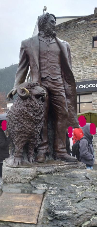 像の「ウィリアム・ギルバート・リース(William Gilbert Rees)」は、英国出身であり 1860年にクイーンズタウンを発見したとされています。「パタゴニアチョコレート」の前で「ワカティプ湖」を背にして立っておられます。羊を従え、今なお クイーンズタウンの発展を見守っているようです。