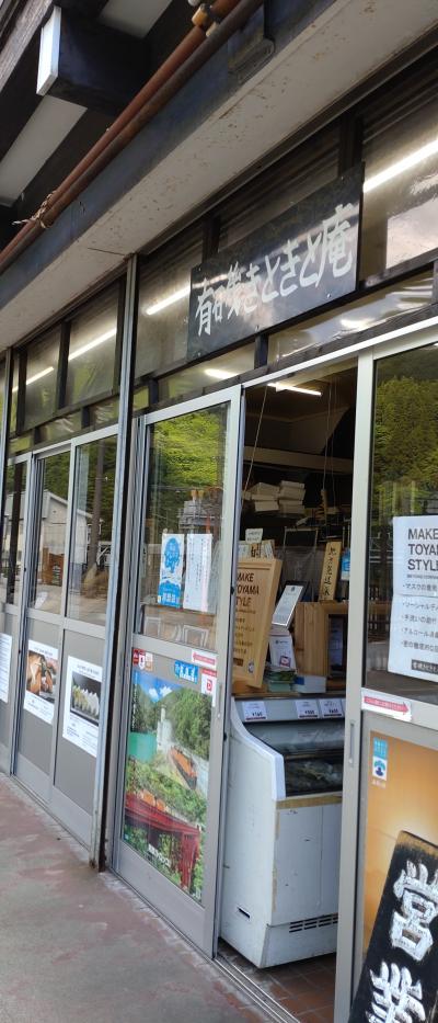 「温泉噴水」を見た後「やまびこ通り」を進むと、富山地方鉄道宇奈月温泉駅の1階に行列ができていました。そんなに人通りが多くない中、何かと見ると このお店でした。やまびこ遊歩道の散策の後はお客さんがいなかったので、じっくり見渡すと賞味期限10分の幻のアルペンチーズケーキでした。人がいないのは販売数量が終わったのでしょうか?660円。プラス200円でコーヒー、紅茶セットもあります。