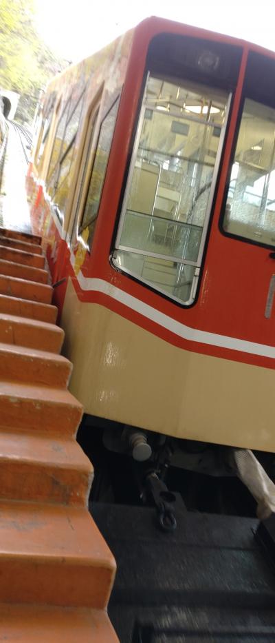 立山黒部アルペンルートの富山県側の出発点である立山駅と美女平を結んでいます。標高差およそ500m、1.3kmを一気に昇りつめます。平均勾配は24度で美女平駅の下辺りが傾斜が29度強で最も急になっています。7分でかけあがります。登り時の左側には材木石が見られます。右側では山裾の景色が広がっています。乗車待ちの順番に関係なく、最終一気に詰め込まれる形になりますので、席を選んでいる暇はありませんね。でも 楽しいです。