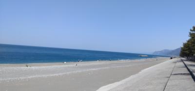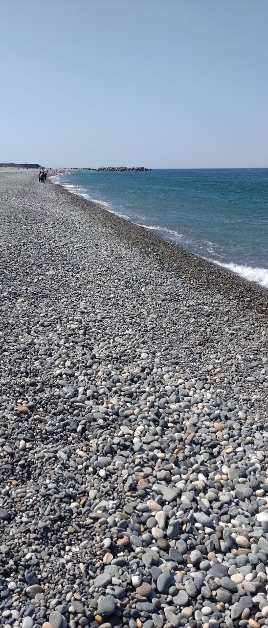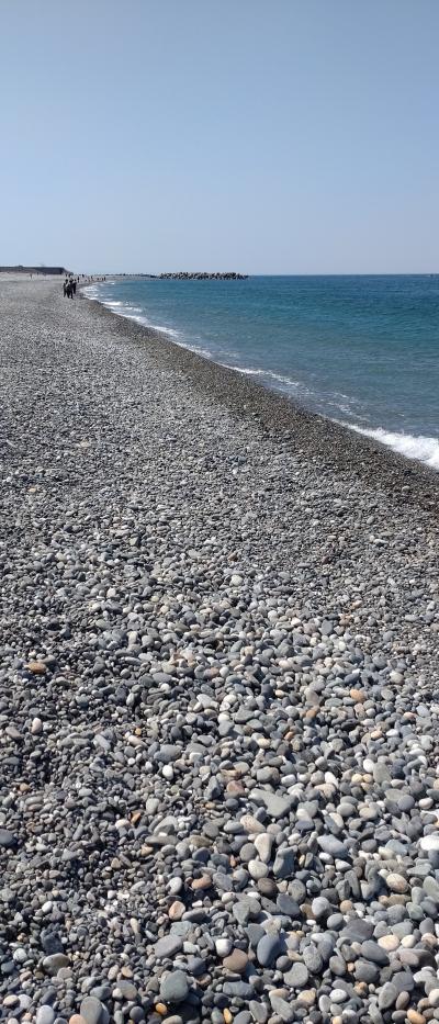 富山県下新川郡朝日町に広がる砂利浜です。天然のヒスイ原石が拾えると言う海岸ですが、多くの人が訪れ、それなりに興味を持ってみているような手近な場所で、簡単に見つかるものではないと思いますが、興味本位で一つ二つ 拾ってみました。ヒスイ探しにかかわらず風光明媚な景色が広がっています。海岸でくつろいでいる地元のおじさんに、手持ちのお宝の真偽を聞いてみると、欲しい人には価値があるかも?との評価でした。ヒスイでなくても、きれいな興味をそそられる石がたくさん転がっています。