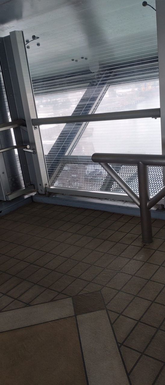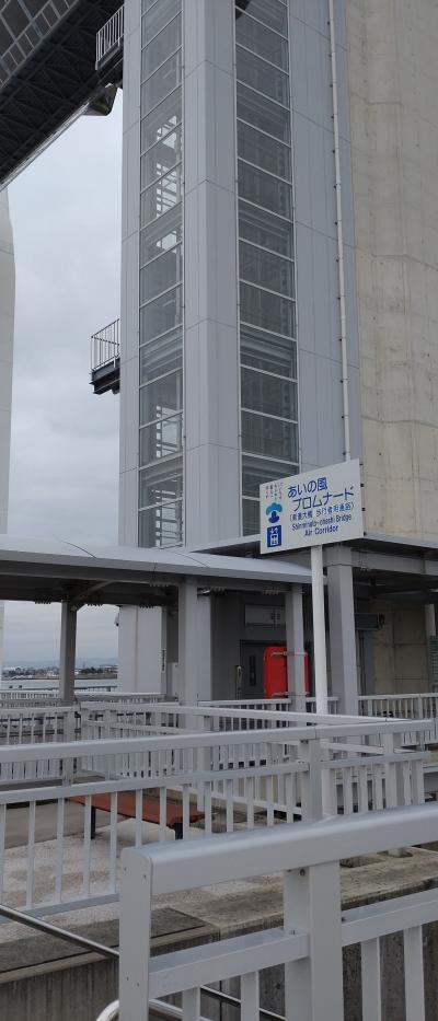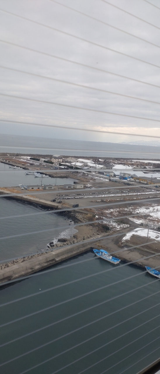 富山県射水市の新湊大橋の車道の下にある歩行者専用通路です。新湊大橋は、日本海側最大の斜張橋で、そこから見える、 富山湾・立山連峰・船が行き交う富山新港は絶景です。海面からの高さは最高で47m。空中散歩はワクワクしてきます。地元の人のウオーキングの人もちらほら見えました。