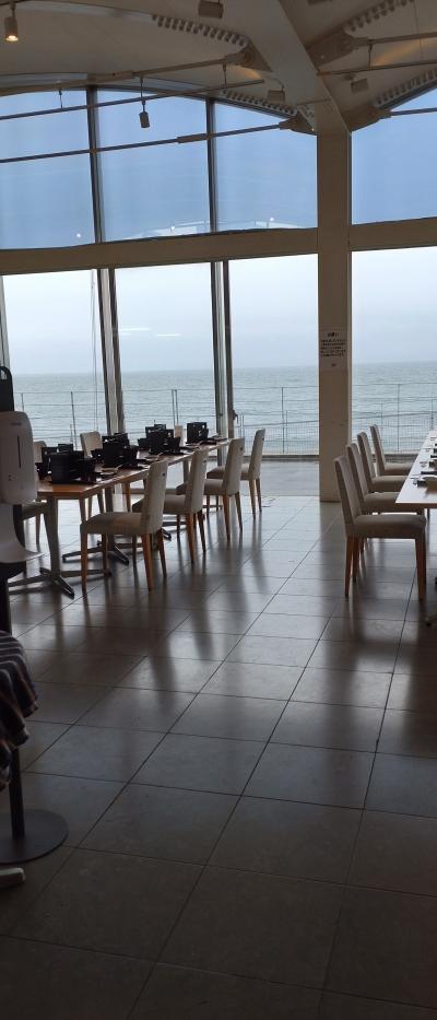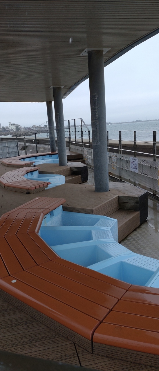 道の駅の前を通った時、橋のような遊歩道の外観が気になり、おみやげマーケットを一周した後、ここにある観光案内所横から外に出て散策してみました。海の風を間近に感じらる解放された空間から階段を登ると足湯もありました。(時期的にやっていませんでした)橋の上は日本海を感じられる素敵な場所でした。