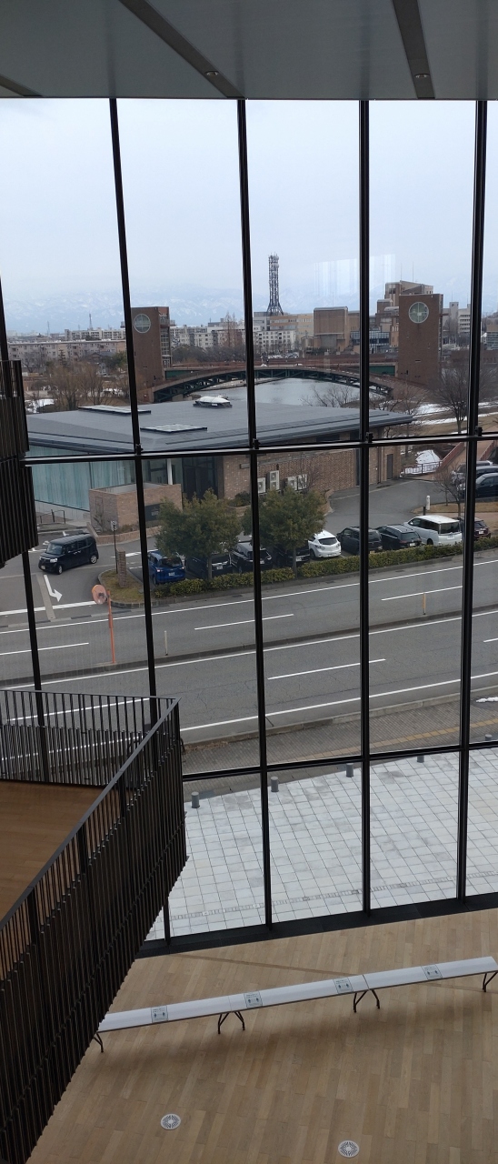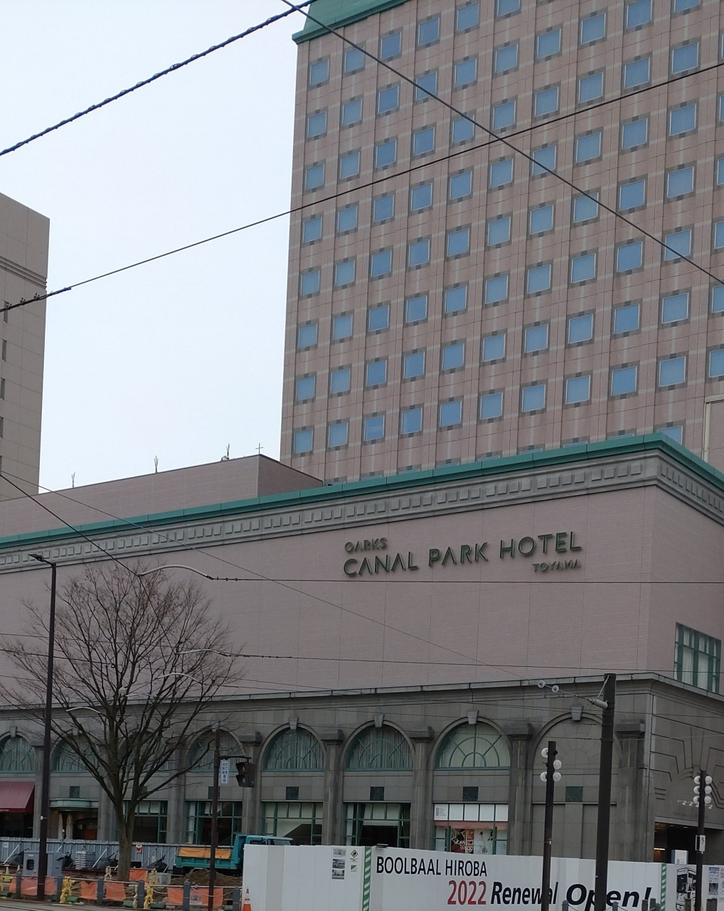 富山駅の北口を出て 歩いてすぐの場所にありました。駅の反対方向に5分ほど歩くと、 とても広い敷地をもつ「富岩運河環水公園」がありました。ホテル前は 何かの工事であわただしくも感じましたが、ゴージャスなホテルからの公園への散策に、非日常の穏やかな気持ちになれました。