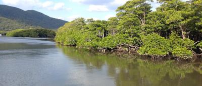 西表島から水牛車に乗って由布島にわたりました。由布島全体が植物園となっている感じです。「レストラン&ショップ水牛商店」が中央付近にあり食事をしました。水牛の池や蝶々園、マングローブの遊歩道などがあり、テーマパークのようです。一周まわるのにさほど時間はかかりません。普段は味わえない 南国情緒を味わうことができます。