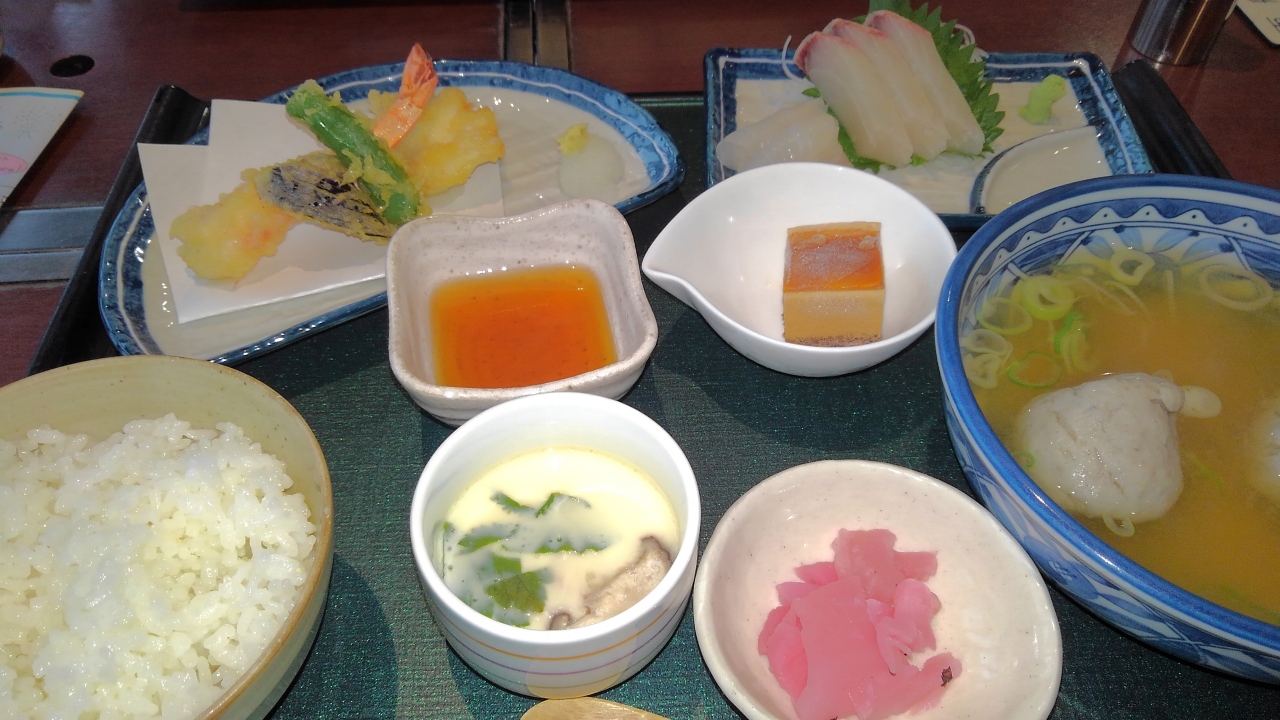 「魚の駅生地」にある食事処です。席数は少なく、景色の見える窓際の席の消毒を待っていたら、予約席の表示板を移動させてくれ、思い通りの席を利用できうれしく思いました。お店の前に観光案内所があり、食事前後の人に声をかけるスタッフの方の熱心さが心に残りました。