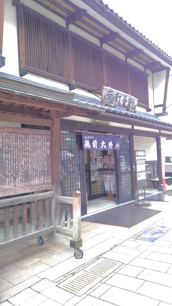 越前大野城のふもとにあります。無料の広い駐車場があるので 街歩きなどの観光拠点として便利です。大きな時鐘があり、目印になります。見学時はかなりの雨模様でしたが、ピンクのかわいい置き傘があり 雨の中気持ちも少しは華やき また重宝もしました。街中のいくつもの観光スポットで貸し借りができ、街の方のやさしさを感じました。