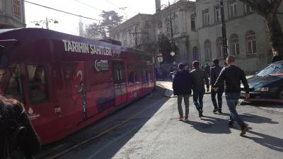 イスタンブールの旧市街・新市街の観光の移動に便利です。車両はきれいですが、やや混雑してました。そんな中、違和感のある騒々しさに、何が起こったかと意識を集中させていたら、背の低い子供が隣で 昔のラジカセ風のもので あまり心地の良くない音楽を流し こちらを見てました。こんなところにもか・・・
