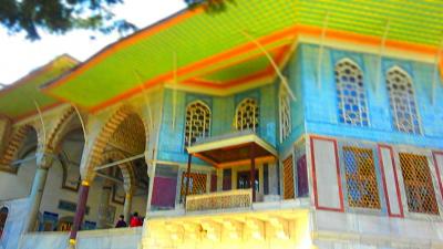 トプカプ宮殿の奥の方にあります。建物の前に立った時 屋根裏の黄色の格子模様に目がひきつけられます。内部では溜息の出るような素晴らしいタイルパターンを見ることができます。トルコの伝統宮殿建築の様式が見れるとても貴重な場所です。