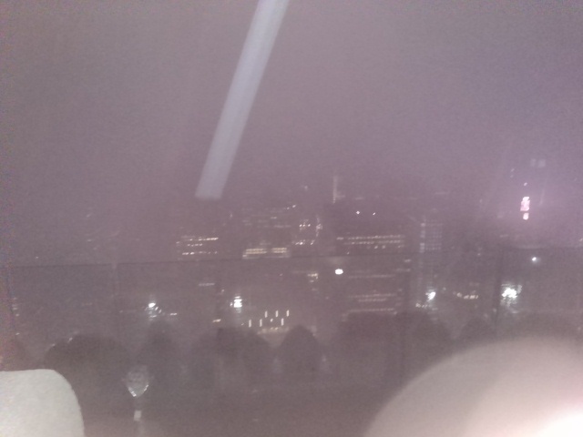 ロックフェラーセンターの展望台です。マンハッタンでTop3を誇る高さで、そこら眺める景色はまさに絶景・・・エンパイア・ステートビルのライトアップをはじめマンハッタンのビル群が密集するニューヨークらしい夜景が味わえると思っていたのですが あいにくの天気で さっぱりでした。雲の合間から 想像の世界を膨らますのみとなりました。