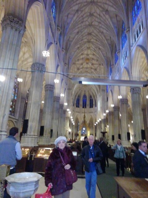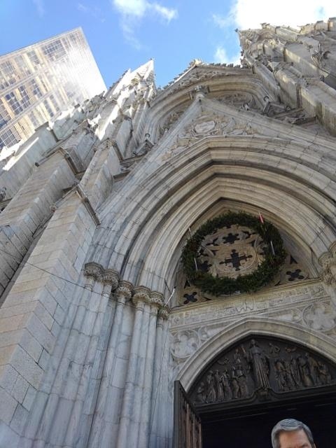 5アベニューにあり ロックフェラー・センターに向かい合うように建っています。ここから「アトラス像」が正面に見えます。マンハッタンの高層ビルの間にある ネオ・ゴシック様式の荘厳な建物です。中に入る時に バッグの中の検査がありました。大勢の人がいました。