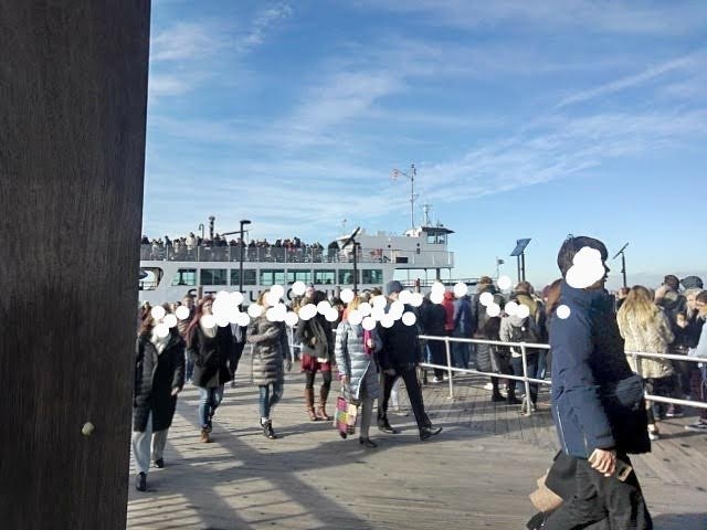 バッテリーパークの船着き場から、自由の女神のあるリバティアイランド、移民博物館のあるエリスアイランドをまわって帰るクルーズコースとなっています。乗船には かなりの行列に並びます。乗船したら 右側に陣取りましょう~。離れ行くマンハッタンの景色と 自由の女神が現れ 徐々に大きくなっていく様子をしっかりと見ることができます。リバティアイランドで見る自由の女神より、船上からのほう感動的です。
