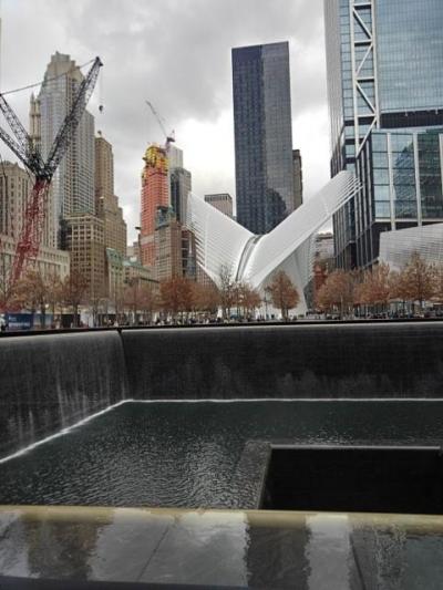 2011年9月11日 ワールドトレードセンターが崩壊して その跡地は「グラウンド・ゼロ」と呼ばれています。現在は、滝が流れる大きなプールがあり、その周りには犠牲者の名前が刻まれています。名前はアルファベット順ではなく、犠牲になった場所・職場などで 一緒にいた人を一緒に刻むなどの配意をされています。追悼の場所です。