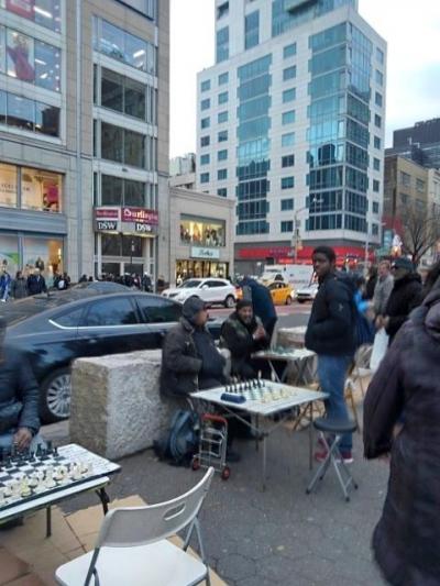 ユニオンスクエア駅近くにある公園です。ちょうどクリスマスマーケットが開かれており イルミネーションが素敵でした。周辺にはスーパーマーケットやレストランが多くあります。椅子を並べてチェスをしている人もいて 異彩のある光景を見ることができました。