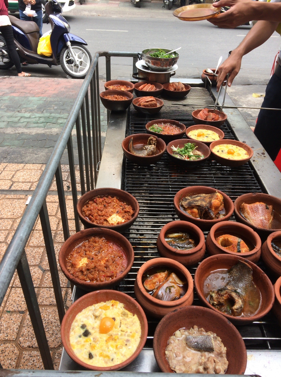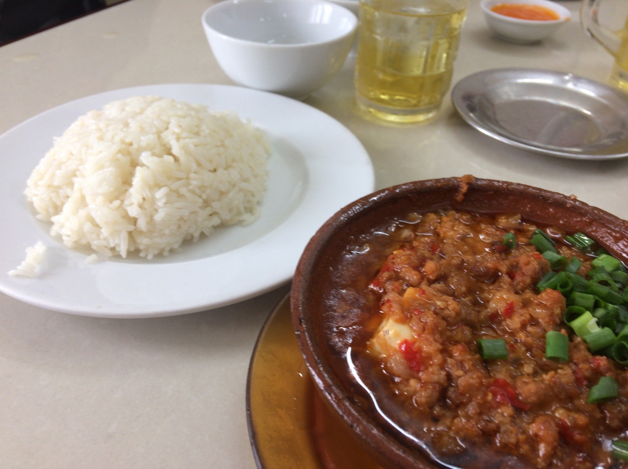 チョロン地区にあるコムガー(鶏ご飯)の人気店です。ホーチミンの鶏肉は痩せていてあまりジューシーとは言えない気がするのですが、このお店の鶏肉はジューシーでした。鶏だしで炊いたご飯もおいしいですし、つけダレもおいしかったです。再来した時には前回気になっていた店先で調理している土鍋のマーボー豆腐を注文してみました。すごーくおいしかったです。