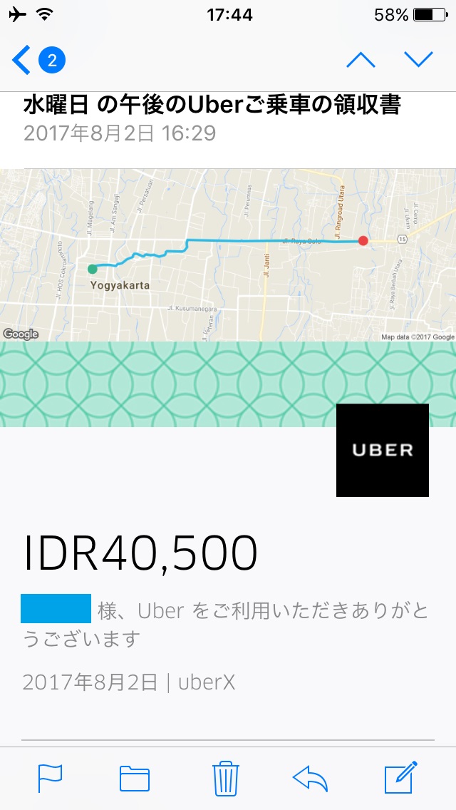 ジョグジャカルタ市内にはUberとGrabが走っています。今回はUberを利用しました。まだ新人さんが多いような感じでしたが、ドライバーさん達はとても丁寧に運転をしてくれましたし、一所懸命、接客してくれました。これからドライバーさん達が増えて、もっと利用しやすくなると思っています。