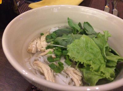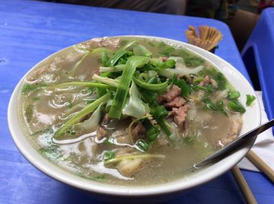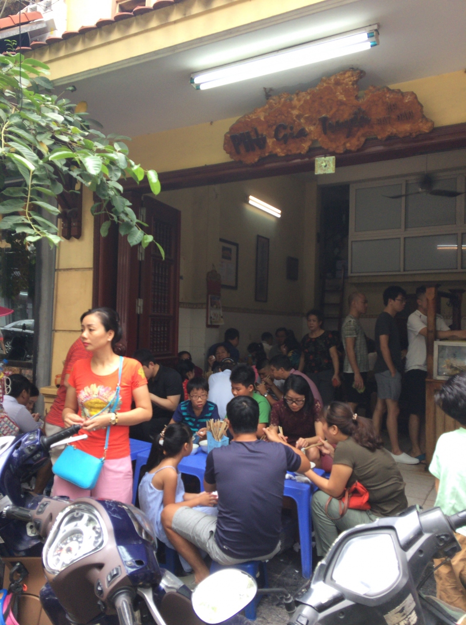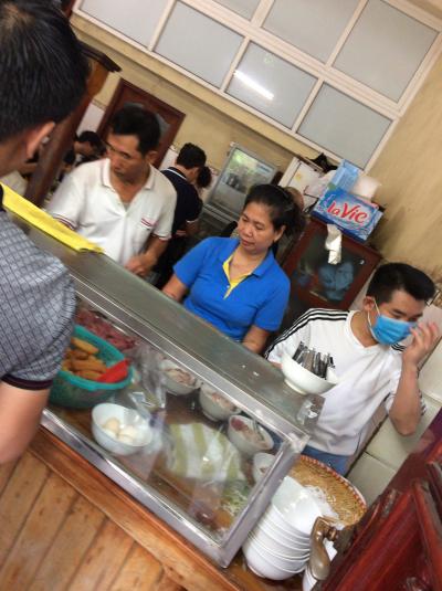 地元の人たちて大賑わいのお店です。席が空くのを待ってすかさず座らないといつまでも食べられないくらいです。フォーはあっさり系ではなく、脂っぽいコテコテのフォーです。お肉もお野菜(ホーチミンのように野菜が別に出てくるわけではありませんでした)もたくさんで満足、満腹間違いなしです。テーブルに揚げパンが置いてあったので、スープにつけて食べました。実は、この揚げパンは同じテーブルにいたベトナム人が購入したものだったらしく、知らずに食べてしまいましたが、ベトナム人は笑って許してくれました。ハノイの人たちのおおらかさにも触れる事ができよい食事でした。
