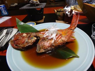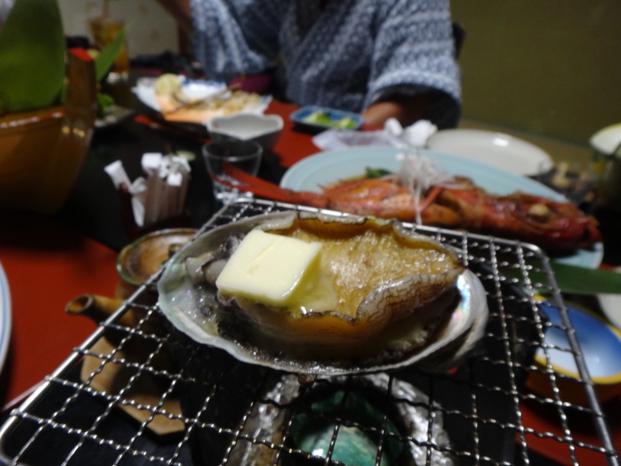 伊勢海老&アワビ&金目鯛&飲み物付きプランでの宿泊でした。お部屋食なので、ゆっくりのんびり、飲みながらお食事ができます。昼食を軽めにとって行ったのですが、完食ができないくらい量が多かったです。特に金目鯛の煮つけは、味もしっかりついていてすごくおいしかったです。朝は散歩がてら朝市を見学してきました。