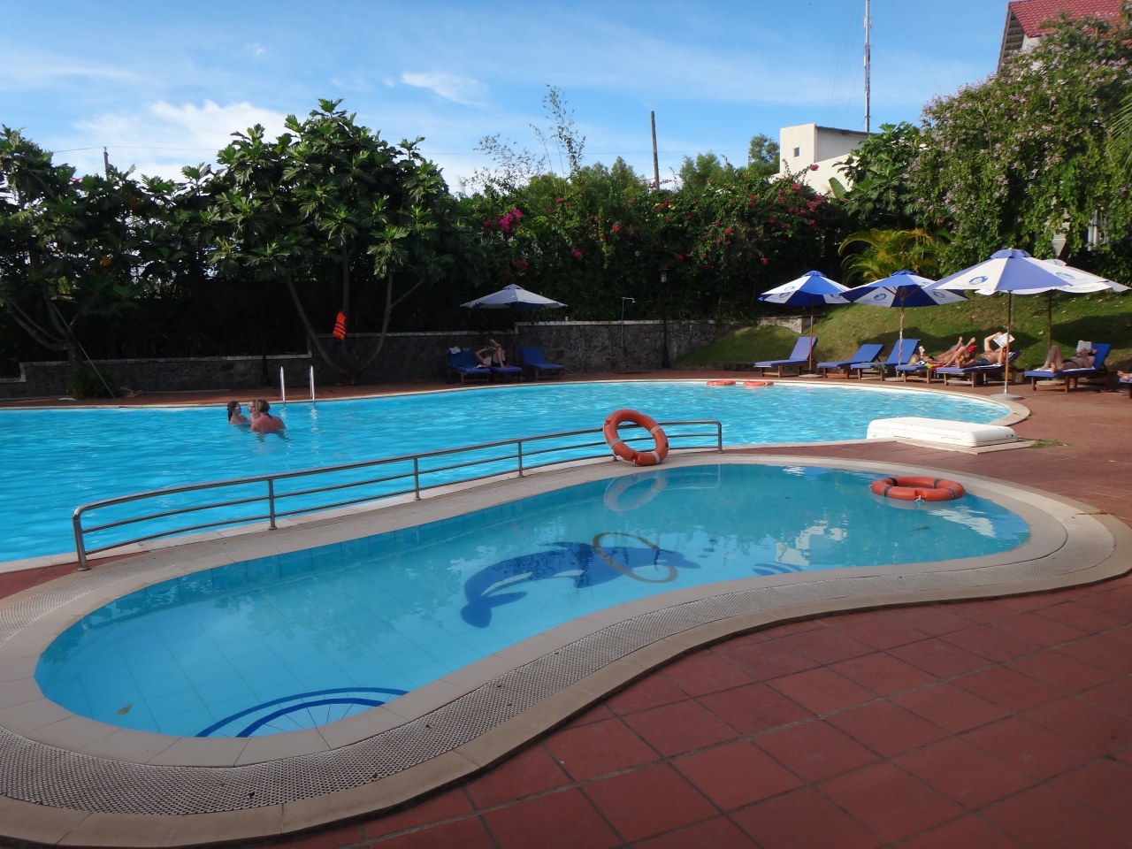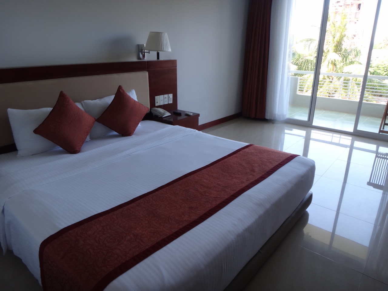 お部屋も広くて、ホテル自体の敷地もとっても広くて、ガーデンもきれいです。お客さんの多くはベトナムの方ですが、中華系の方の団体さんも多かったです。朝食は6:30からで、メニューも豊富で◎ フォーはその場で作ってくれるのでおいしくいただけます。しかし、コーヒーはいつもぬるくておいしくありませんでした。 ホテルのプライベートビートがホテル前の道路を渡った所にありますが、ビーチチェアーがたった3つしかなく、くつろげる状態ではなかったです。