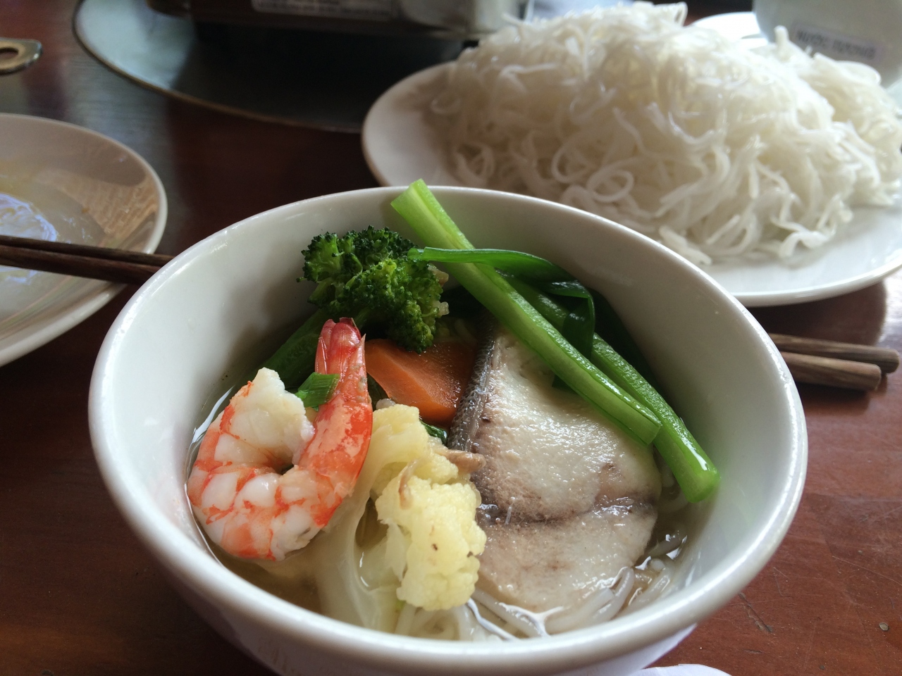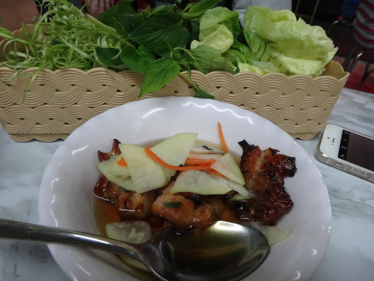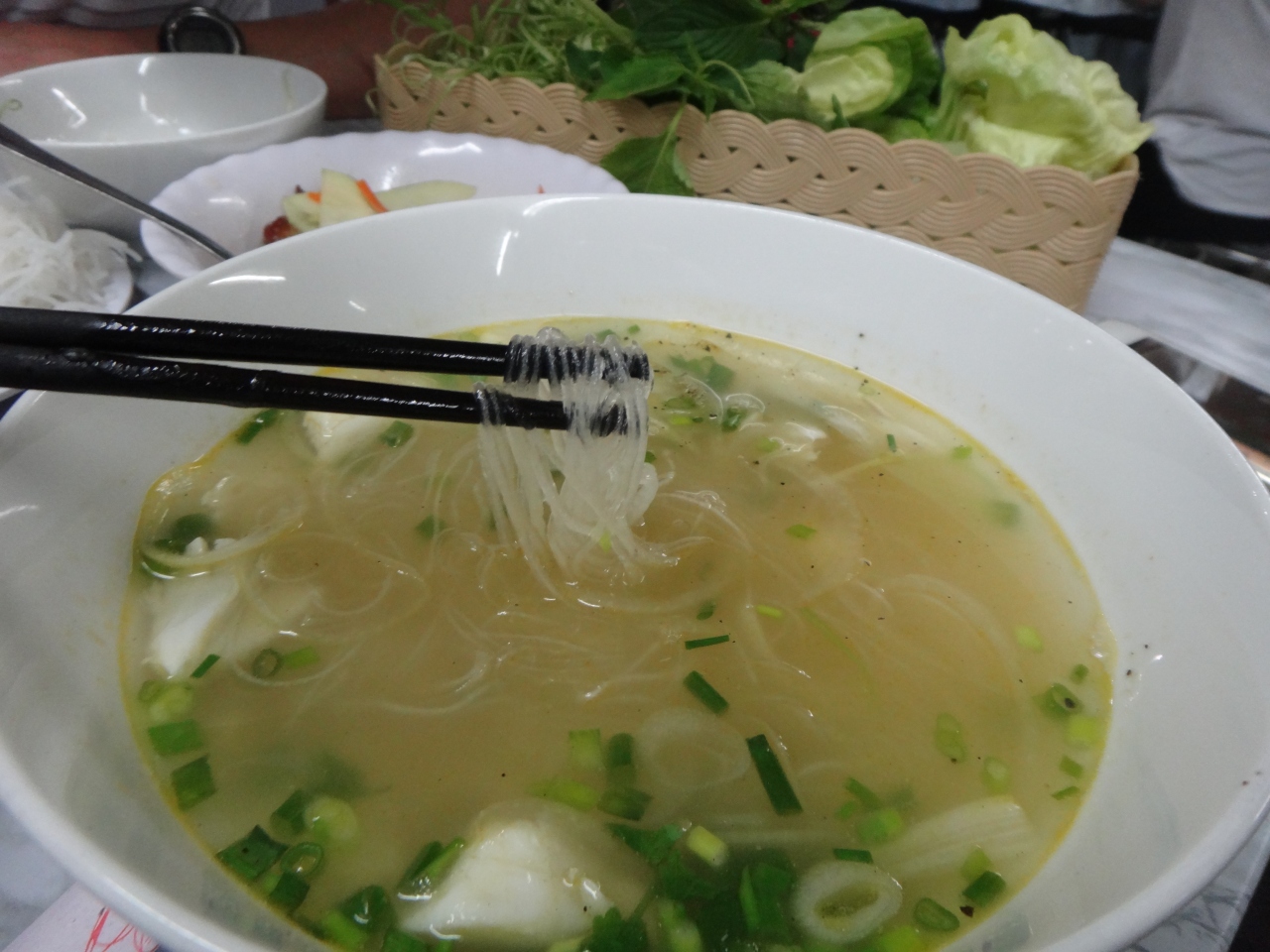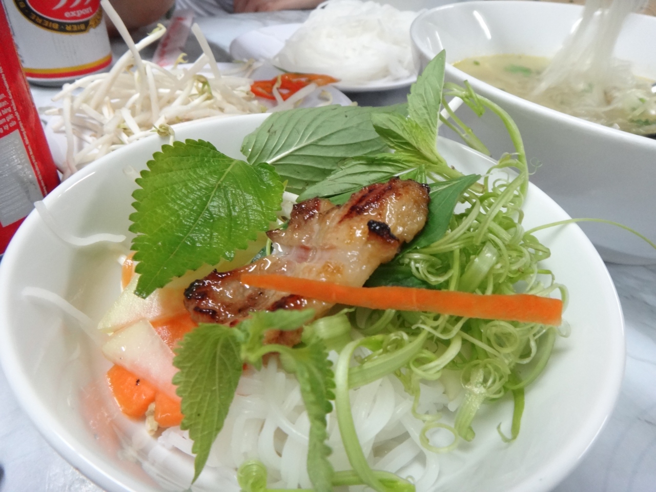 青パパイヤ入りの甘酸っぱいタレに豚肉と米麺、そしてたっぷりの香草を入れていただく「ブンチャー」がすごくおいしいです。お店自体は小さいですが、地元の若者からお年寄りまでが集うローカル色の強いお店です。ブンチャーの他に蟹の身入り春雨(「Mien Nau Cua(Vermicelli Soup With crabmeat)」)を食べたけど、おいしかったですよ。