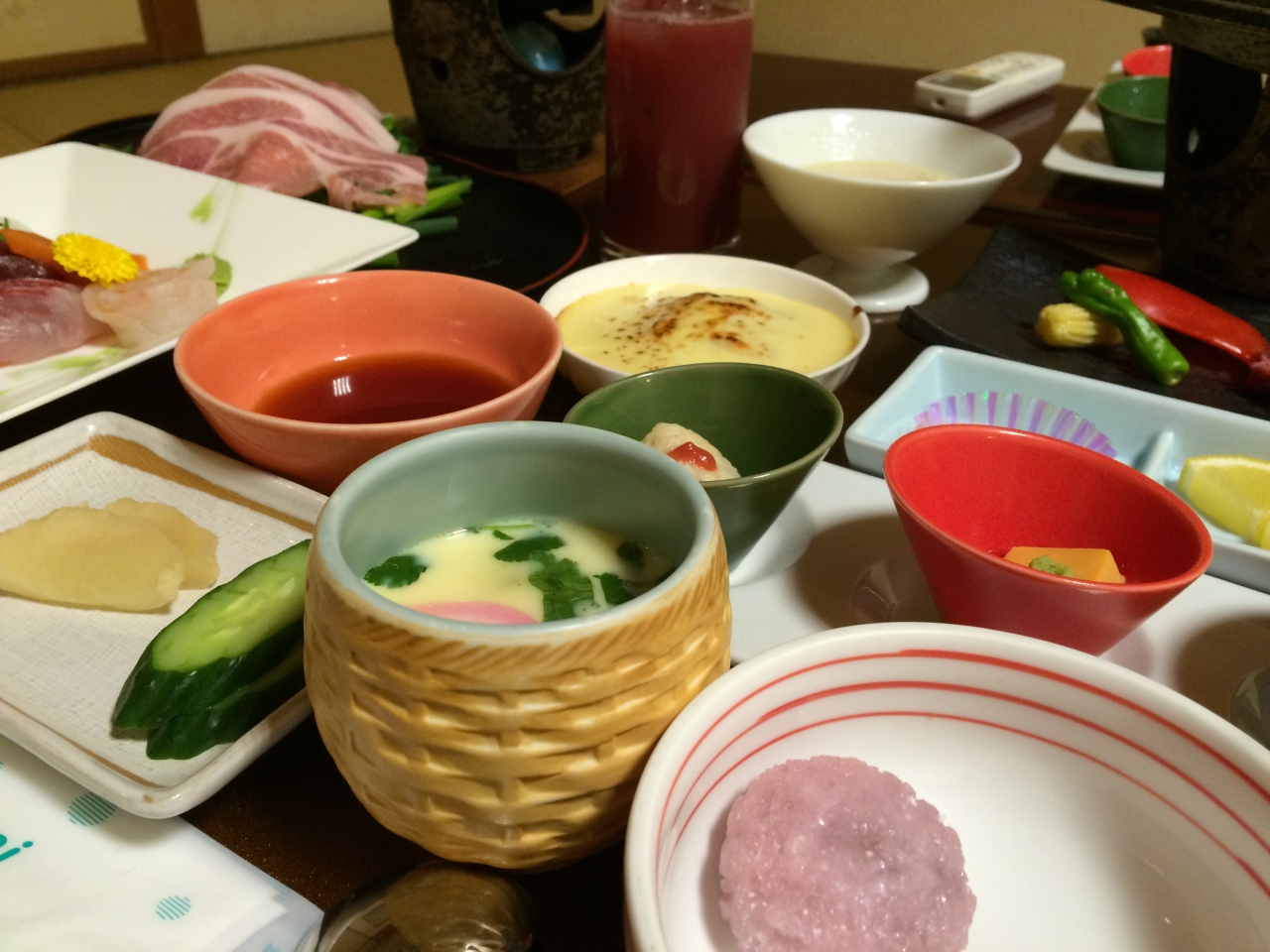 - 夕食はボリューム満点。和食の中にちょっぴり洋風の料理入りでした。