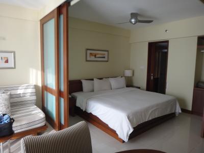 お部屋が広いです。床はコンクリートですが、スリッパがホテルにないので裸足か、靴を履いて滞在することになります。ジャグジーがついていて快適ですが、お湯が出ているか時々確認しないと水になってしまうのでチェックが必要です。水になっていたら一度止めて、また出せばお湯になります。