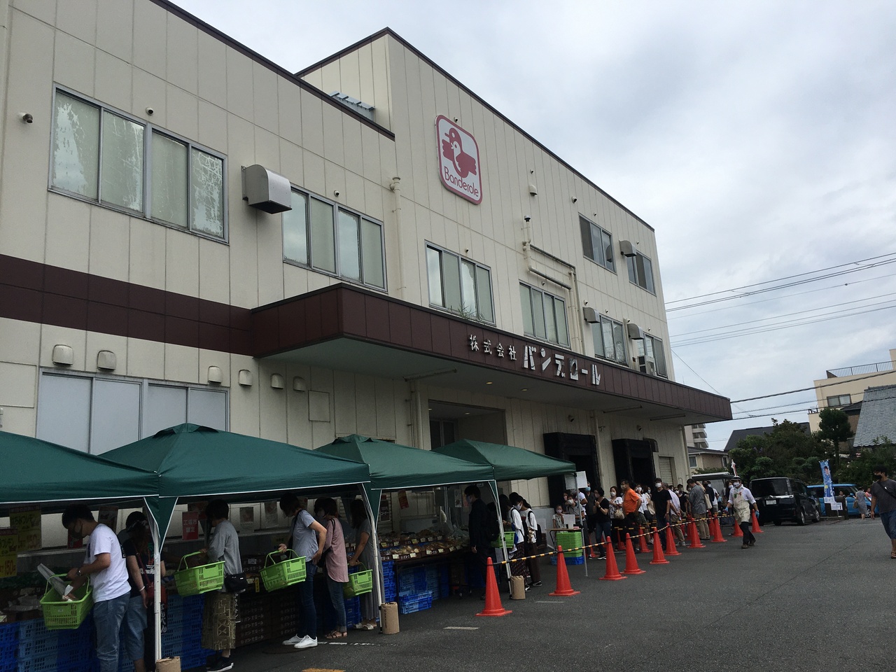 沼津発のパン「のっぽパン」を製造している工場で、毎月第一と第三日曜日に工場市が開催されています。スーパー等で売られている菓子パンのっぽパンの他、工場市でしか販売されていない惣菜系のっぽパンや焼きたてパン、洋菓子やのっぽパングッズなども販売されています。午前9時30分からですが、混雑が見込まれる場合は開始時間を前倒しすることもあります。工場内の駐車場は20台程度しか停められないので臨時駐車場もあるようですが、少し離れた所のようです。のっぽパンは外れがなくどれも美味しいのですが、値段が安くなっている分、賞味期限が短いので注意が必要です。