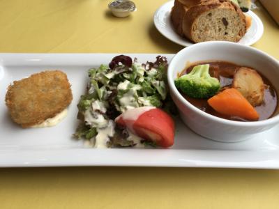 ランチで伺いました。炭水化物はご飯パン麺類どれも好きですが、最近はパンが密かにマイブームです。パンは食べ放題で10種類から選べます。どれも焼きたてで美味しい。メインはビーフシチューとコロッケのセットメニューにしましたが、こちらも美味しく頂きました。窓側からの銀座の眺めも良かったです。