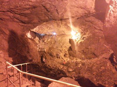薄手の長袖パーカーにショートパンツで、外は汗が出る、洞窟入口では冷える、中ではちょうどいい感じです。