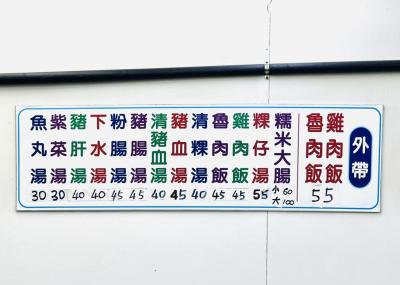 淡水に行った際、通りすがって寄った食堂。お祭りの行われている祝日だったせいもあるけれど、客がひっきりなしにやってきていた。注文したのはお薦めのセットで、油飯(おこわ)と肉とろみスープ。正直そんなに期待していなかったのだが、ともにとてもおいしく、日本人の口に合う味だと思った。気に入ったから、翌日の祭り見物の際も立ち寄ったけれど、夕食時間帯であるのにもかかわらず営業していなかった。不定期で休むようなので、この店目当てで淡水に行く場合は、あらかじめ電話で確認したほうがいいと思う。