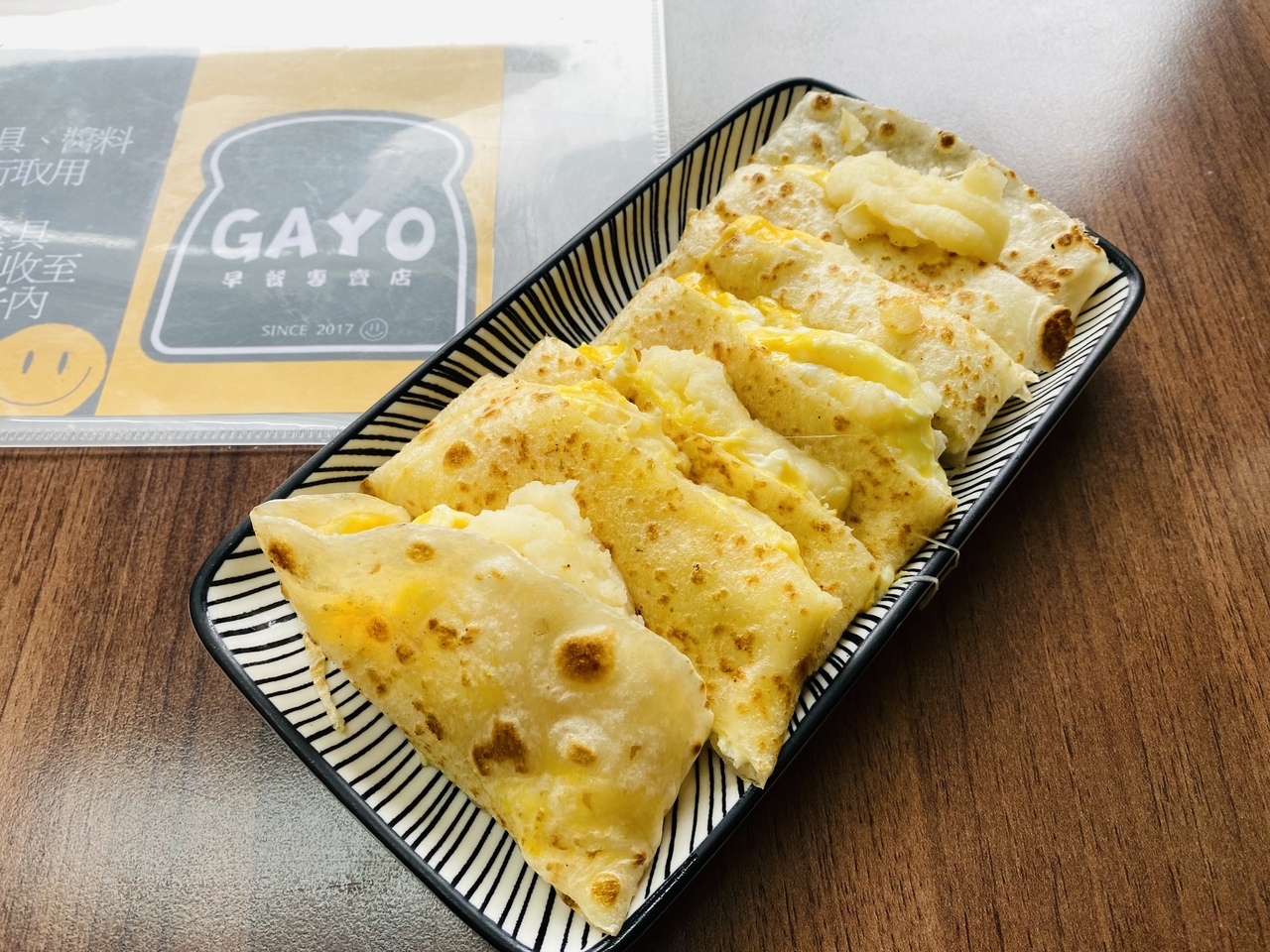 宿泊したホテルにもっとも近いところにあった朝食屋。トーストや麺類もあるが、ここでぜひ食したいのは蛋餅。蛋餅と言っても餅ではなく、いわばクレープのようなもの。シンプルにベーコンチーズの蛋餅を注文しようとしたところ、薯泥起司(じゃがいもチーズ)を見つけ、それをオーダー。もちもちとした皮に好物のじゃがいもとチーズが包まれ、とてもおいしかった。他にも、タロイモなどをくるんだ蛋餅もあり、人気があるようだ。営業時間が7〜12時なので、その点は要注意。また、イートイン(と言っても路上)の場合、座席数は多くないが(10席ぐらい)、多くの客がテイクアウトをしているので、長く待たされることはないと思う。