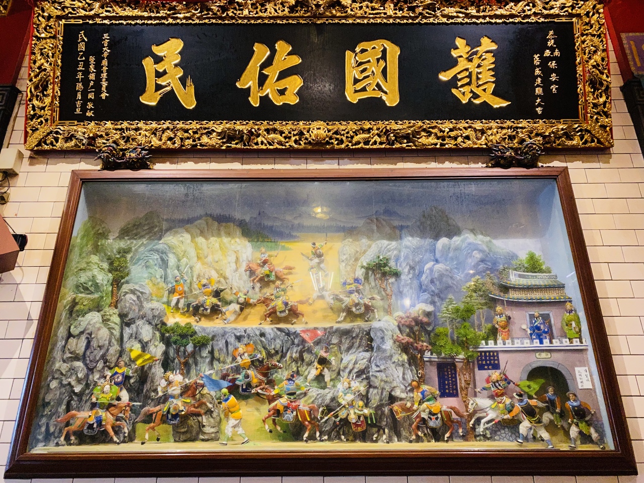 台南中心部からバスで1時間ほどのところにある、媽祖を主として祀る廟。到着してすぐ目に飛び込んでくるのが、千里眼将軍と順風耳将軍の像。二将軍の像は台湾各地にあるが、ここのが台湾最大のもの。1つ目の神殿には五府王爺が祀られ、次の神殿に媽祖、一番後ろには玉皇上帝、観世音、地蔵菩薩などが祀られている。そのほかにも非常に多くの神仏が祀られ、特に月下老人のご利益に与った信者が多いようだ。ここは非常に面積が広く、初めてバスで近くを通った際は宮殿なのかと思った。晴れた日には青く大きな空と赤い柱が美しいコントラストを生み出す。台南へ行くたびに、ほとんど毎回訪れる好きな廟だ。