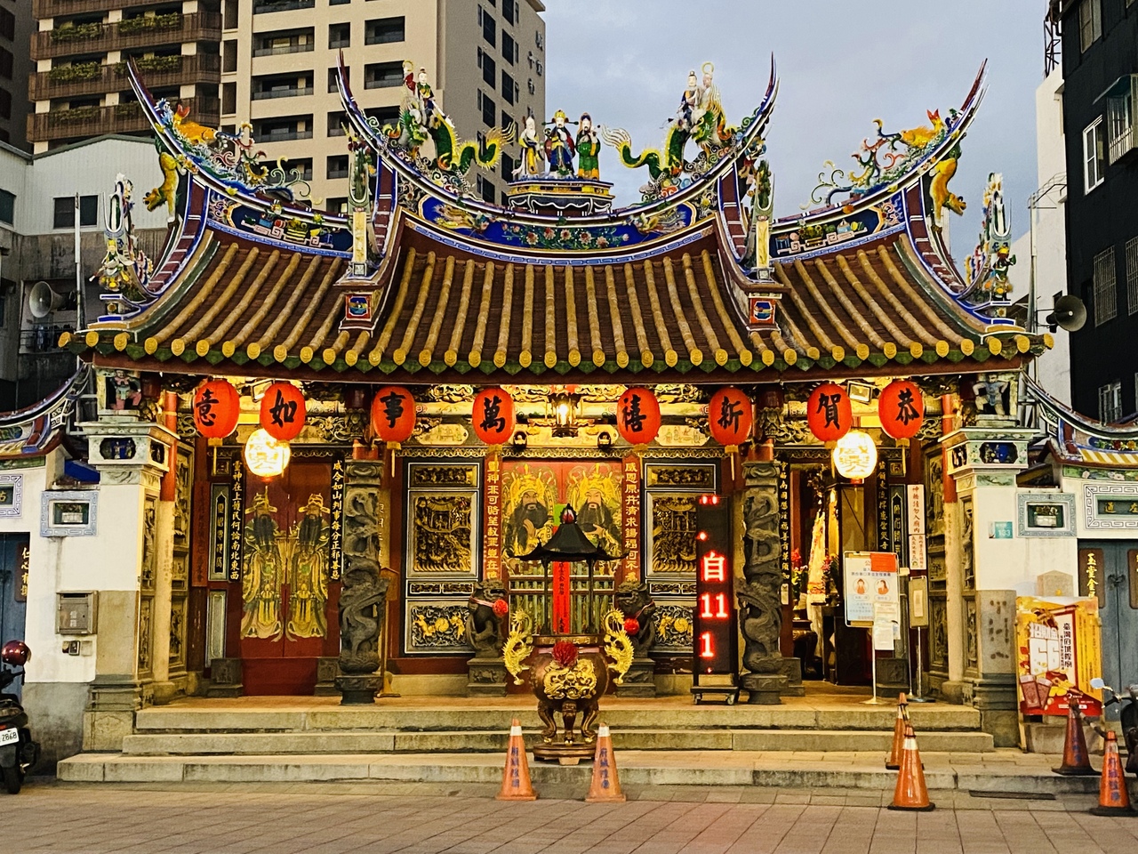 間口がそれほど大きくなく、通り過ぎてしまうかもしれない廟が、玄天上帝を祀る北極殿。しかし、侮るなかれ。この廟は1660年代に創立されたもので、文化部(文科省相当)所轄の国定古蹟となっている。日本時代および戦後の2度、道路拡張のために前殿が取り壊され、現在のものは1970年前後の建造物。斜向かいに土地公を祀る小さな祠(中和境福徳祠)があるが、その神も元は北極殿に祀られていた神。黒塗りの柱、絵画、古い鐘など見るべき文化物が数多。ここはひっそりと静かに祈られる信者が多い。観光地ではなく、祈りの場であることを忘れずに。