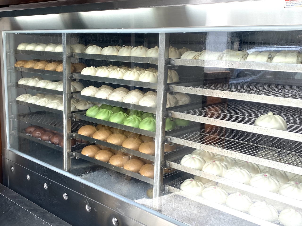 1973年に小さい屋台で創業し、今では立派な店舗を構えるまでになった「阿明肉包」。材料に非常にこだわる店で、平日であるにもかかわらず、客足が途絶えることはなかった。肉まん、黒胡麻餡、チーズ餡、タロイモ餡、抹茶あずき餡など多くのテイストがあったけれど、シンプルな黒糖まんをその場で食べた。確かに人気店の味だと感じた。以前使用していた、生地を捏ねる機械がサボテンの植木鉢となって店の前に置かれている。
