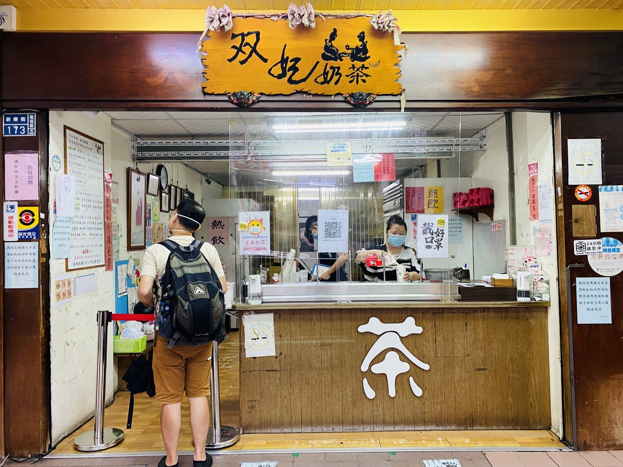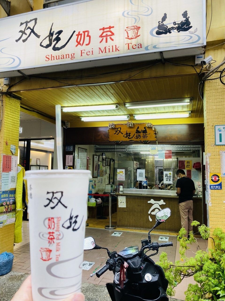 鹽埕新樂街には多くのミルクティーショップが並ぶため、奶茶街(ミルクティー通り)という異名がある。今回利用したのは、氷を入れないのがポリシーの双妃。看板商品となるミルクティーは4種ある。「双妃奶茶」は紅茶にミルクを入れたもので、甘みの強いもの。「美人奶茶」は紅茶7割、プーアル茶3割でミックスしたものにミルクを入れたもので、甘みは「双妃奶茶」の7割。「長寿奶茶」は紅茶とプーアル茶を等分にミックスし、ミルクを足したもの。甘みは「双妃奶茶」の5割。「長春奶茶」は紅茶3割、プーアル茶7割にミルク。甘みは「双妃奶茶」の3割。「美人奶茶」でも十分プーアル茶の味と香りを感じる。プーアル茶を飲み慣れていない場合、「双妃奶茶」か「美人奶茶」が無難かと思われる。プーアル茶にミルクを加えたものや、ウーロン茶にミルクを加えたものもあり、ともに無糖。他にも、ミルクを入れないものなどもあり、ほとんどがホットとアイスで提供されている。高雄に行った際はぜひ飲んでみたいミルクティーだ。