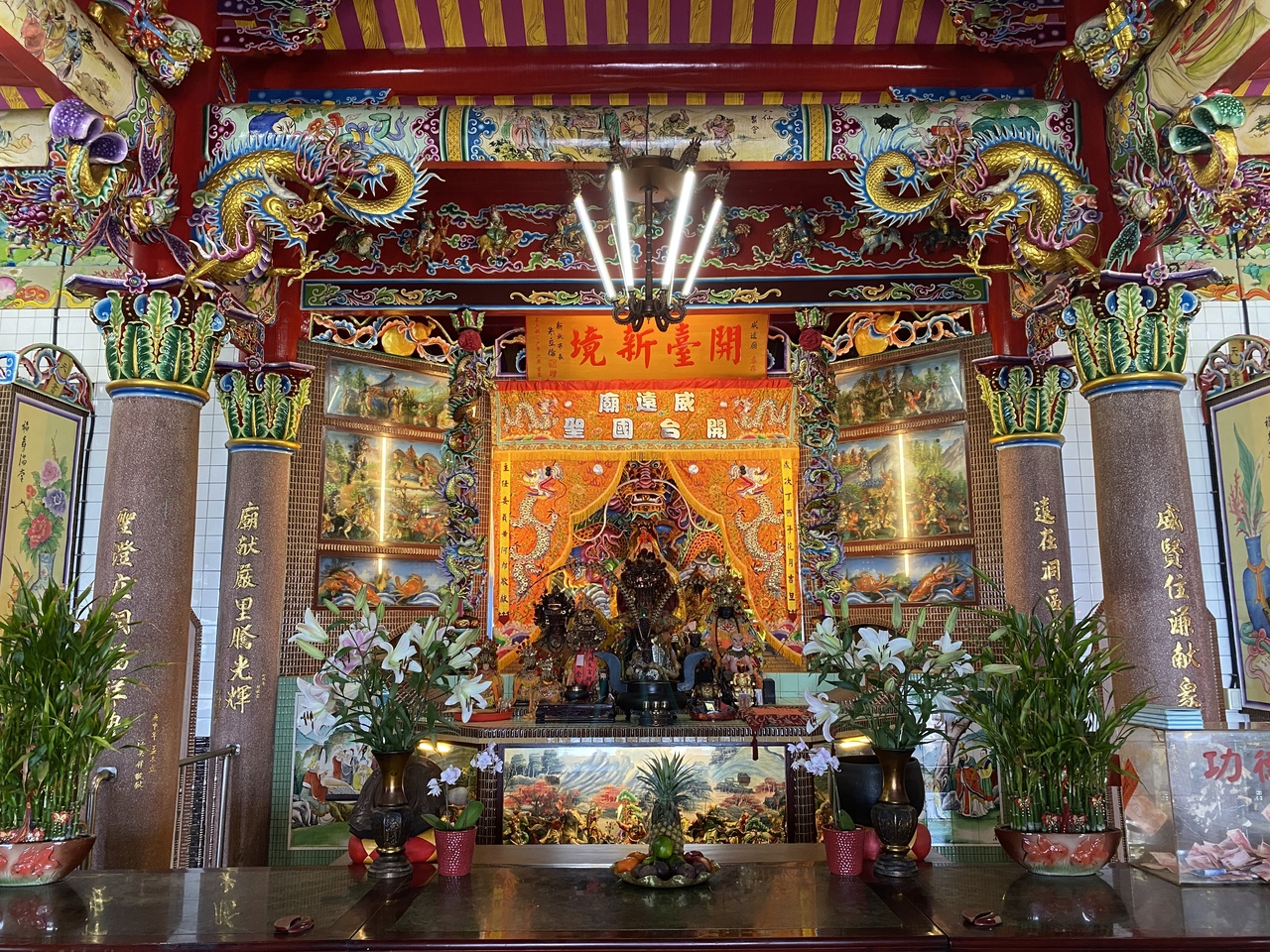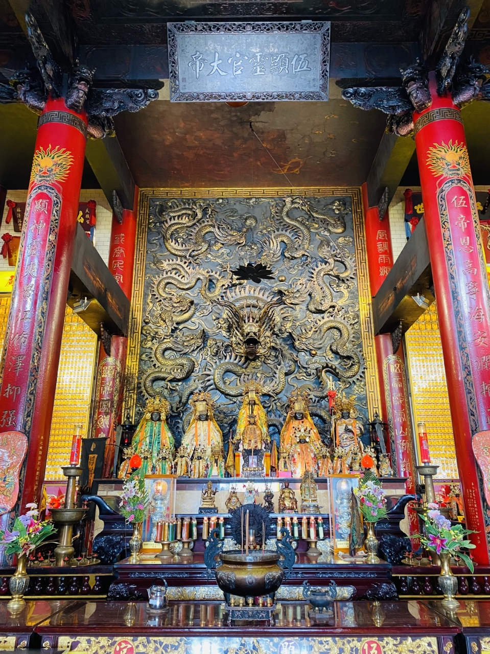 人工的に造られた龍潭大池潭に1972年に建てられた廟で、主祭神は關聖帝君。その他、1階には文昌帝君、五路財神、太歳神などが祀られ、2階には觀世音菩薩、文殊菩薩、普賢菩薩が、最上階には玉皇大帝、三寶佛、三官大帝がそれぞれ祀られている。2022年に開廟50週年を迎える廟にお参りに来る人は多い。屋根に飾られる装飾が精巧で美しく、長いこと見ていられる。池の周りを散策をすることもでき、のんびりした時間を過ごすことができる。