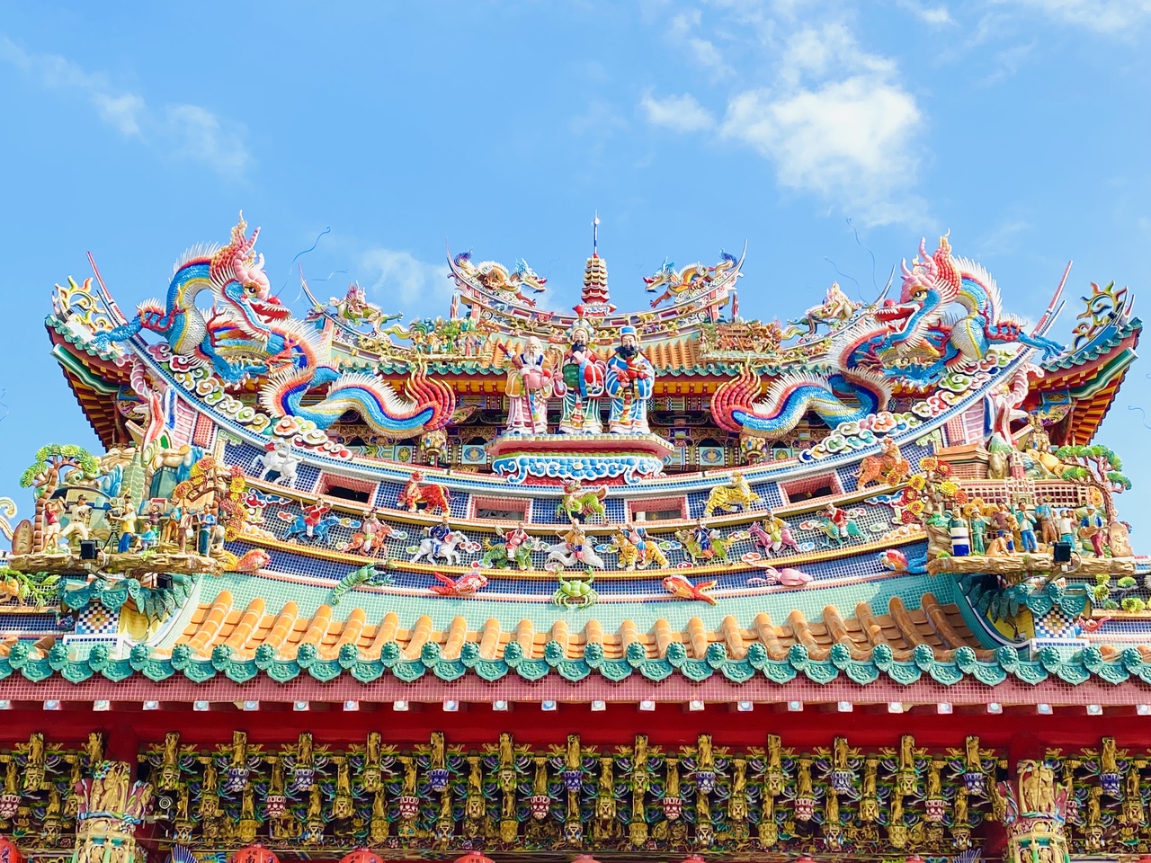 1747年に創建された、天上聖母(媽祖)を主祭神とする廟で、現在の建物は2000年に再建されたもの。天上聖母のほか、文昌帝君、關聖帝君、千手観音、薬師如来、孚佑帝君、水仙尊王、清水祖師などが祀られている。建造物そのものにも見応えがあり、装飾1つ1つを見ていたら、時間はあっという間に過ぎていく。基隆の中心地区ではなく、和平島内にあり、一般観光客は基隆駅からバスを利用することになる。付近にはシーフードレストラン街や和平島公園などもあるから、1日ゆっくりかけて和平島を楽しむのもいいと思う。