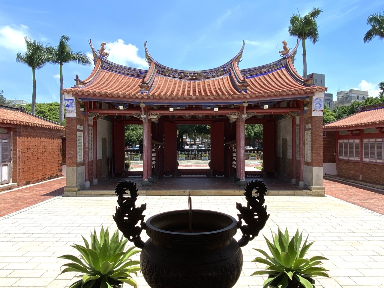 1811年に建てられた文武廟は三級古蹟に指定されていて、文祠は学問の神である文昌帝君を主として祀り、武廟では關聖帝君が主祭神として祀られていて、観光スポット「鹿港」の南の端にある。端と言っても、鹿港に行ったら必ず訪れる龍山寺からは徒歩で5分。それにもかかわらず、訪問者は非常に少ない。鹿港は多くの観光客で溢れかえっているイメージがあるが、ここは別。晴れた日には、青い空、椰子の木の緑、文武廟屋根の赤のコントラストが非常にきれいだ。賑やかなスポットを離れ、ここでのんびりとした時を過ごすのもよいと思う。