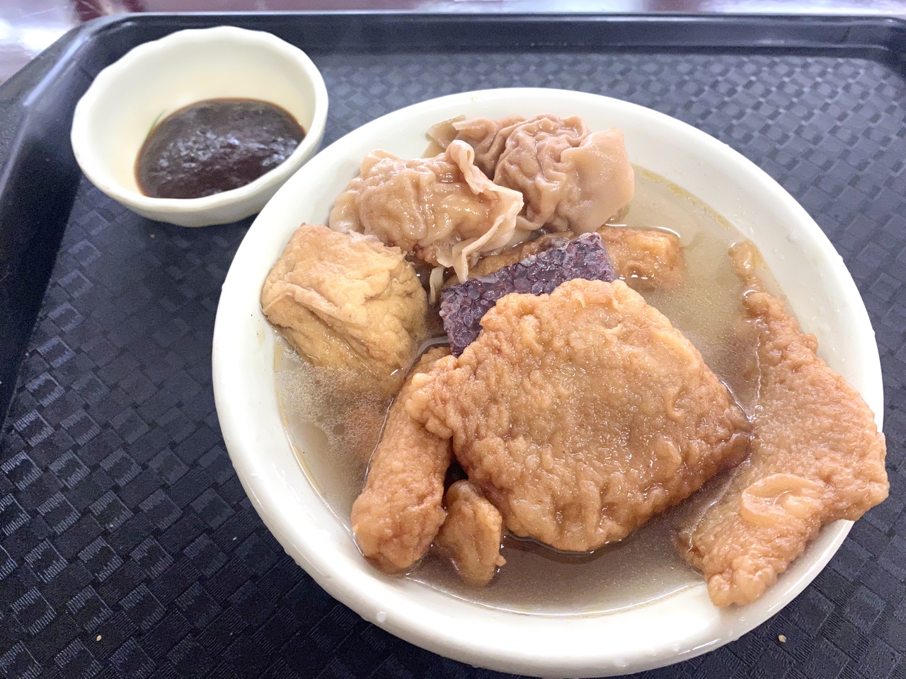 台湾式おでんは「甜不辣」といい、ティエンブラーと読む。語源は日本語のてんぷらだが、いわゆる、エビや野菜などを油でカラッと揚げたものではなく、さつま揚げのようなもので、台湾では非常にポピュラーな食べ物だ。その名店「亞東甜不辣 」が萬華区青山宮の近くにある。MRT龍山寺駅から歩くと6分ほどで、西門駅からも徒歩圏内にある。日本のものとはやや異なるが、添えられた味噌だれにつけて食べるととてもおいしい。「わざわざ台湾へ来てまでおでん?」と思うことなかれ。けっこう病みつきになる味わい。
